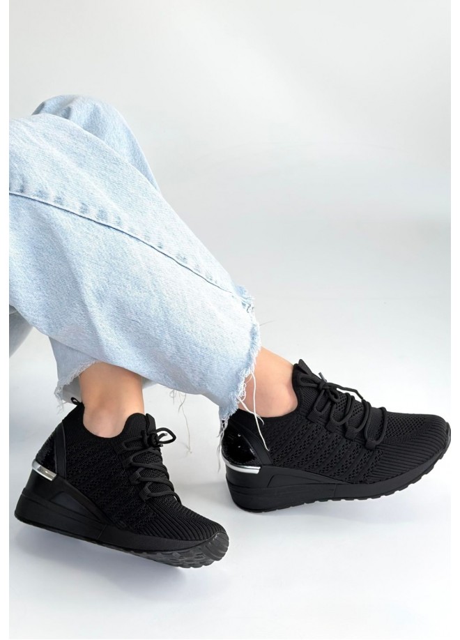 Weor Siyah Triko Bağcıklı Spor Ayakkabı