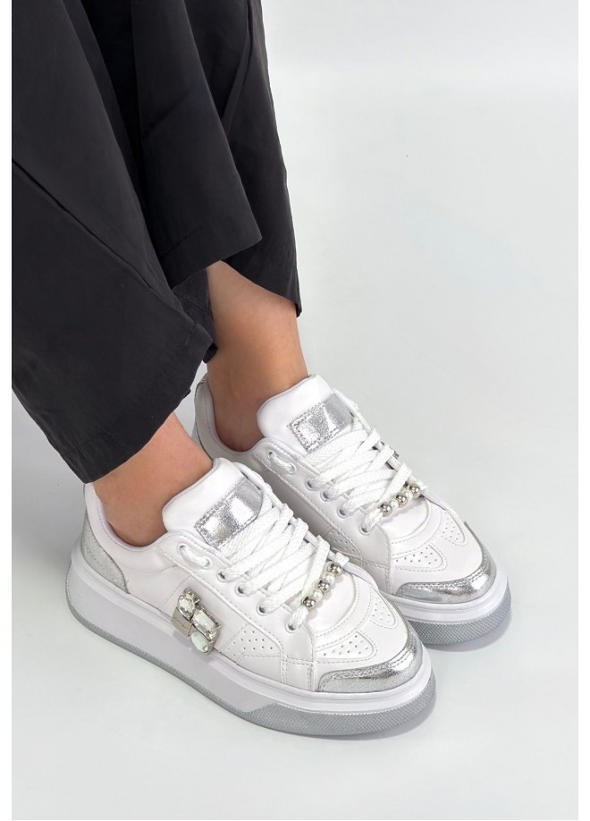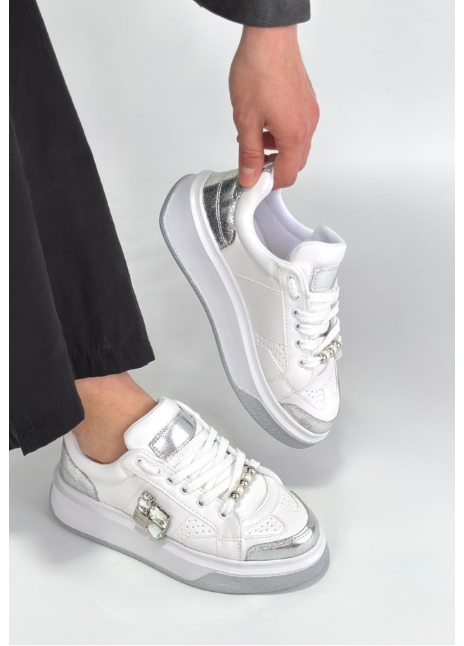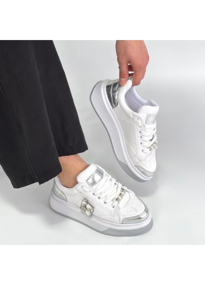Ceans Beyaz Cilt Bağcıklı Spor Ayakkabı