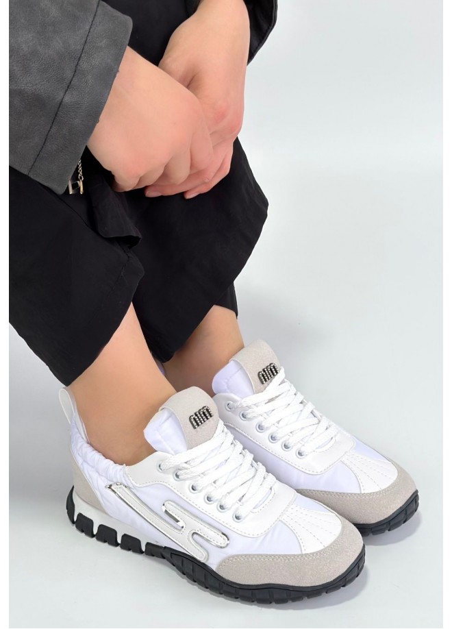 Huer Beyaz Nubuk Bağcıklı Spor Ayakkabı