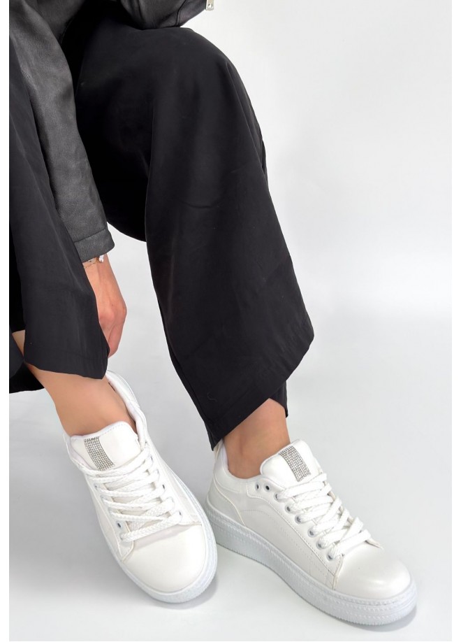 Yier Beyaz Cilt Bağcıklı Spor Ayakkabı
