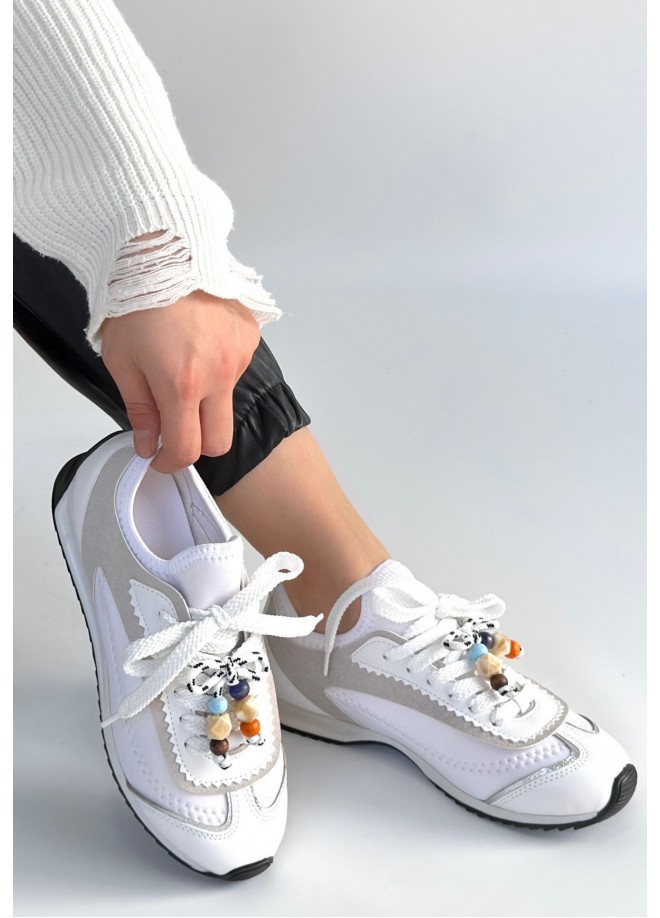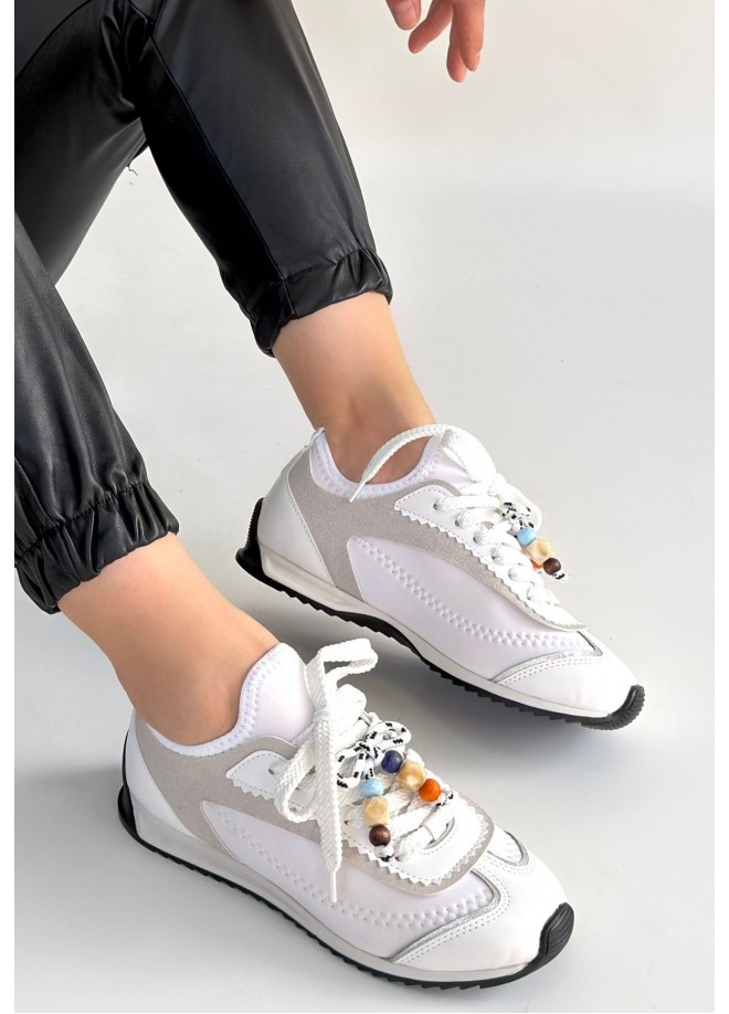 Riaf Beyaz Cilt Bağcıklı Spor Ayakkabı