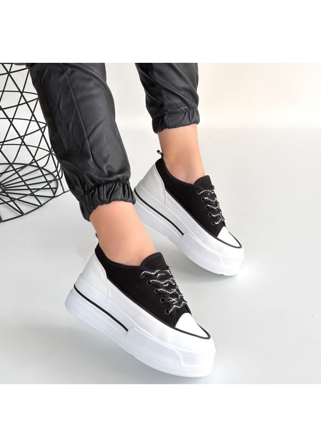 Dalen Siyah Keten Bağcıklı Spor Ayakkabı
