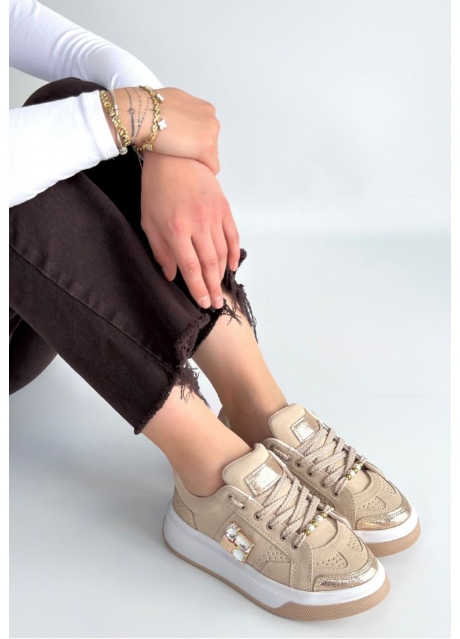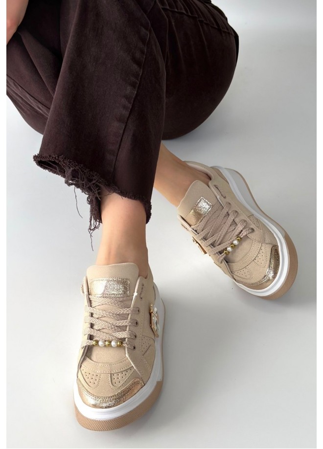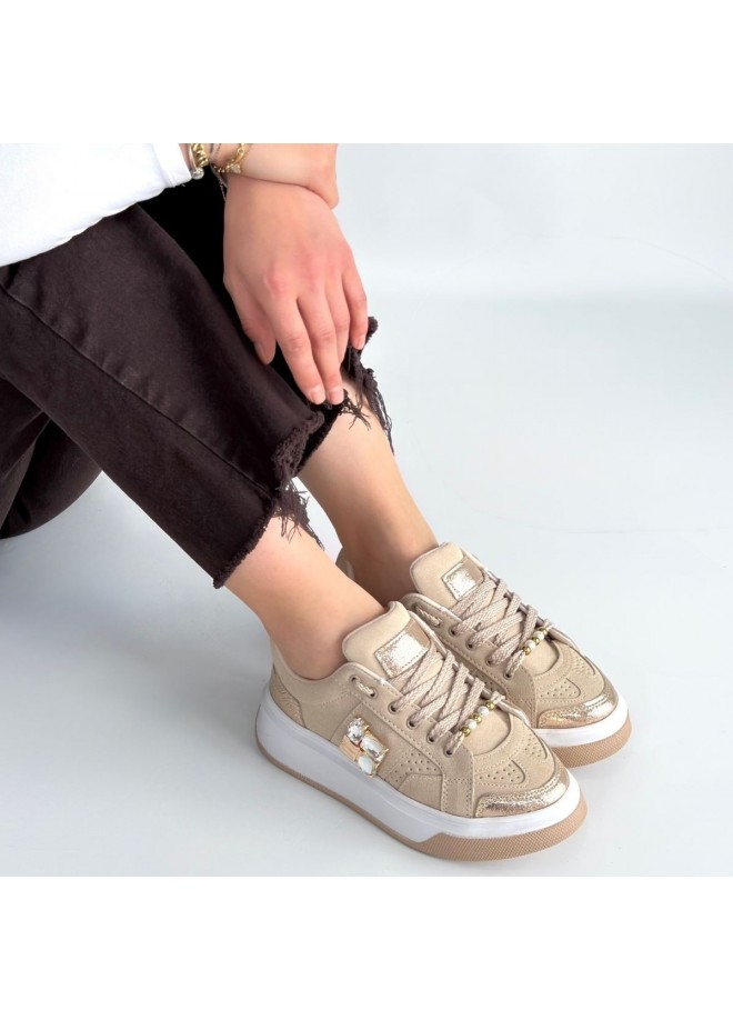 Ceans Bej Süet Bağcıklı Spor Ayakkabı