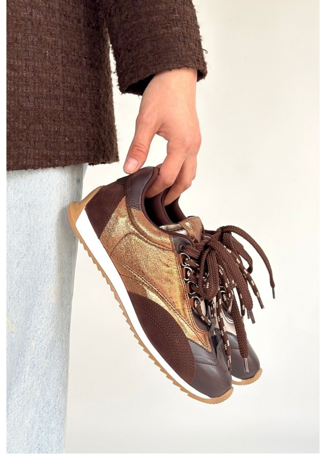 Reat Kahverengi Cilt Bağcıklı Paraşüt Detaylı Spor Ayakkabı