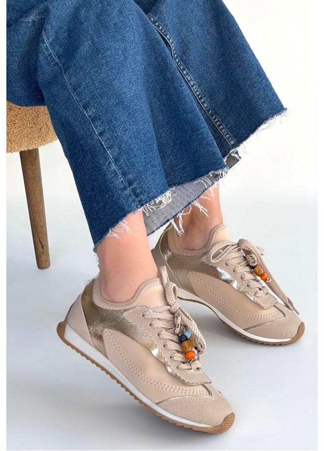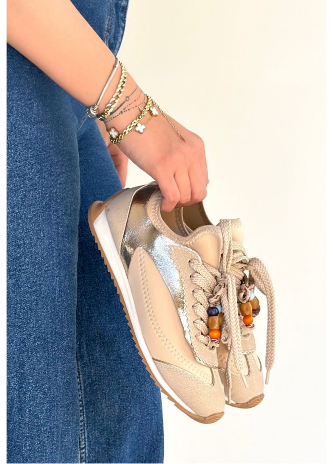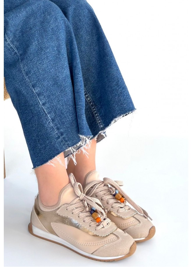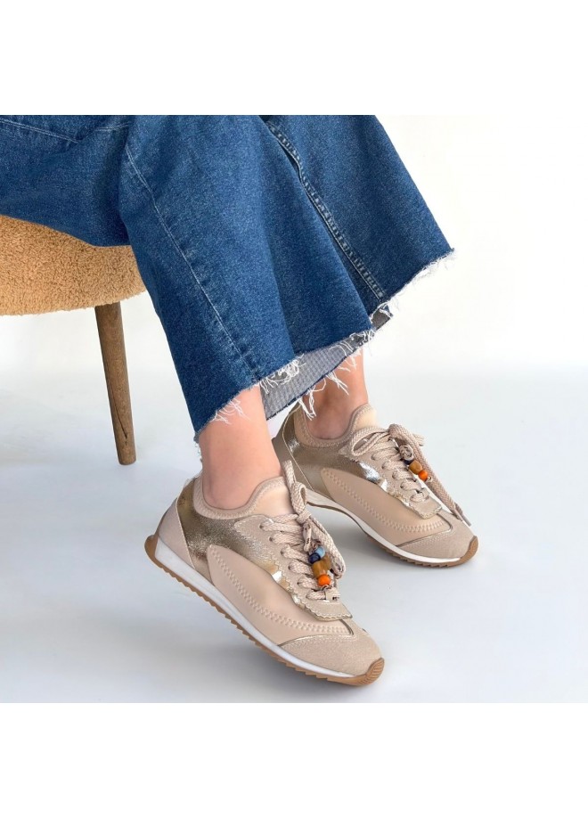 Riaf Bej Cilt Bağcıklı Spor Ayakkabı