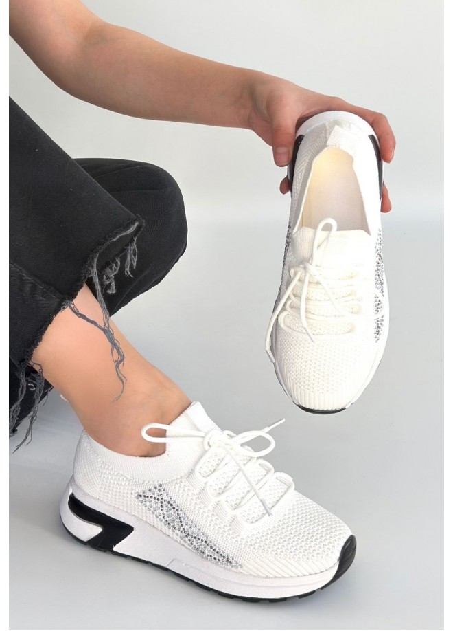 Belan Beyaz Triko Bağcıklı Spor Ayakkabı