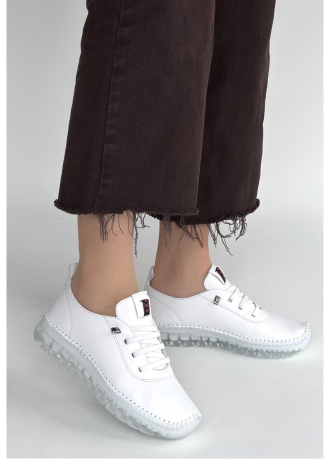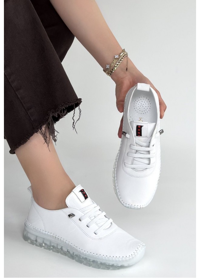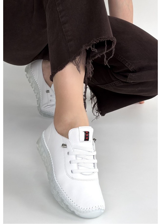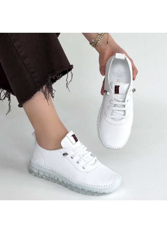 Jiten Beyaz Deri Bağcıklı Spor Ayakkabı