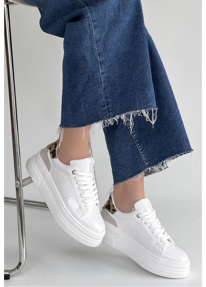 Jetan Beyaz Rugan Bağcıklı Spor Ayakkabı