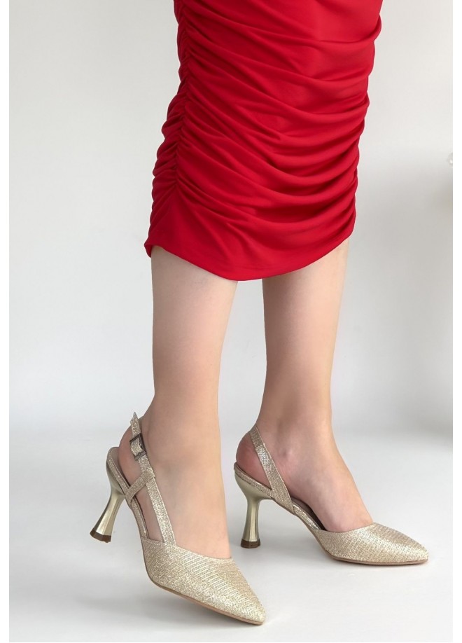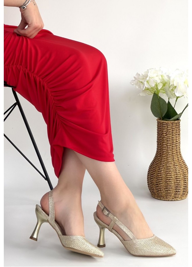 Minde Gold Cilt Simli Topuklu Ayakkabı