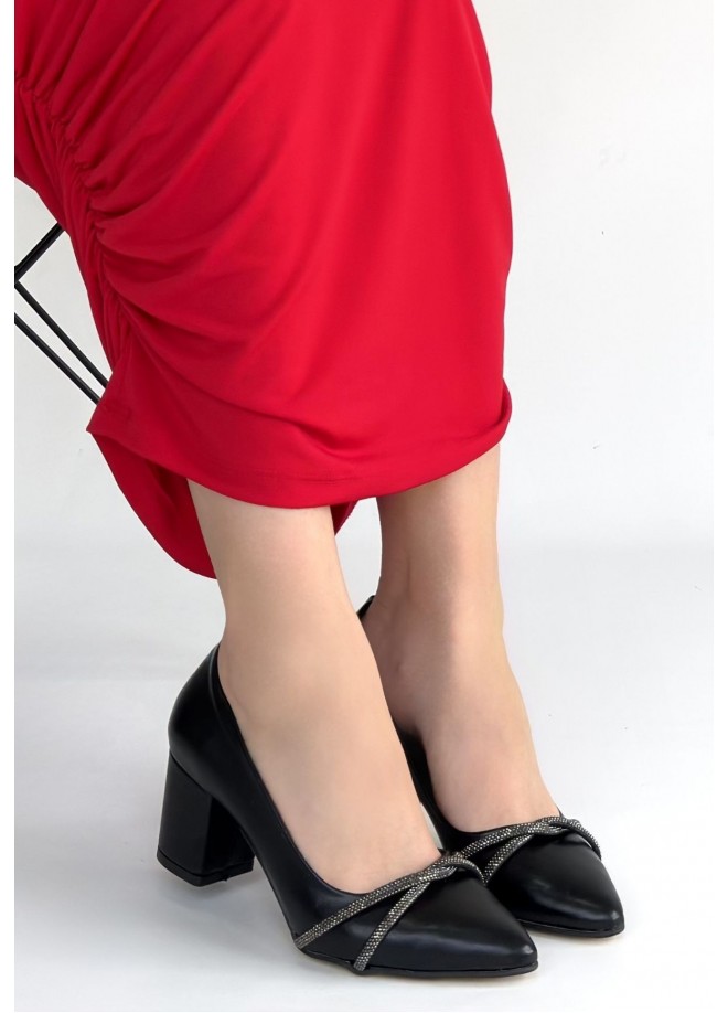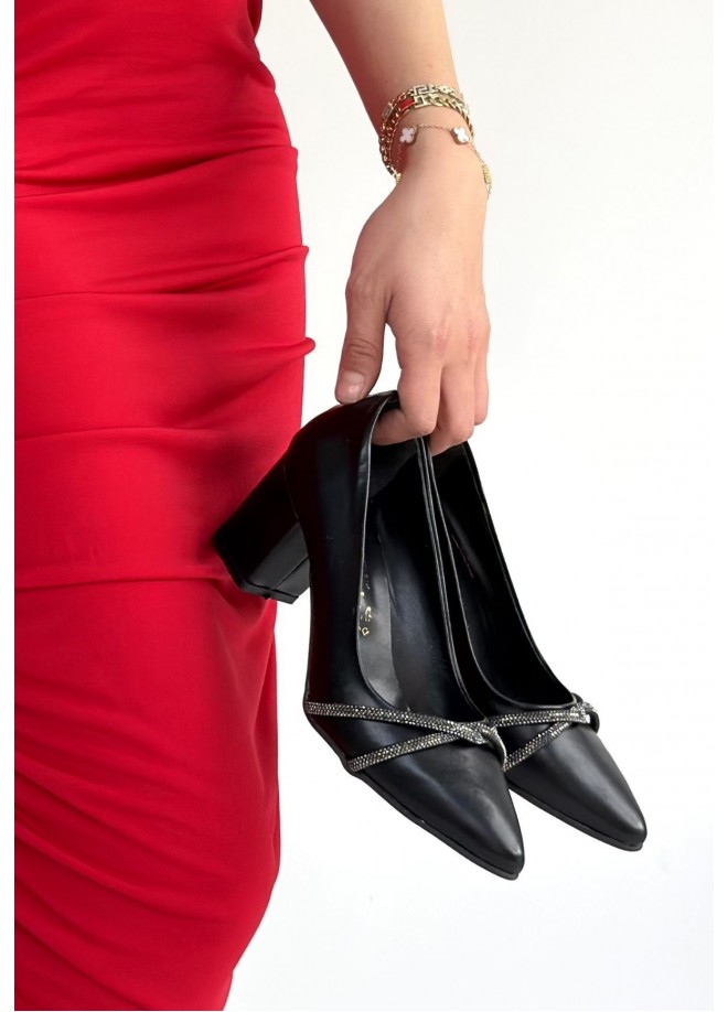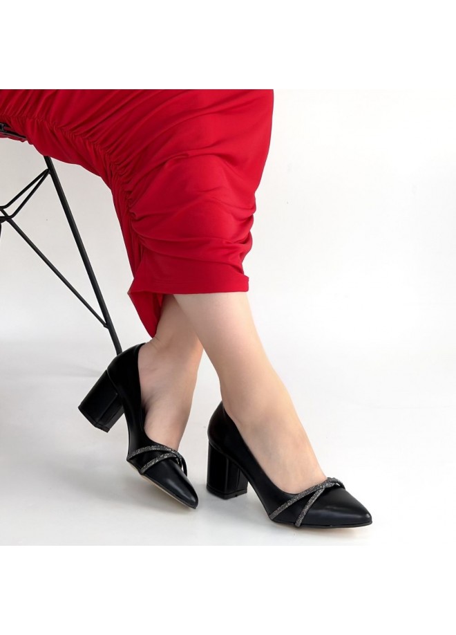 Zenta Siyah Cilt Topuklu Ayakkabı