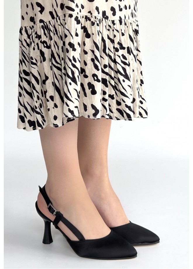 Joga Siyah Cilt Simli Topuklu Ayakkabı