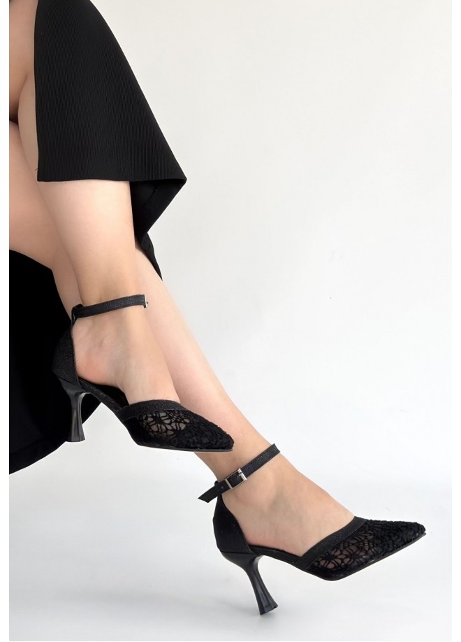 Etiketler: Weja, Siyah, Cilt, Tül, Detaylı, Topuklu, Ayakkabı