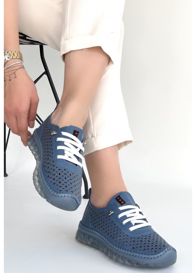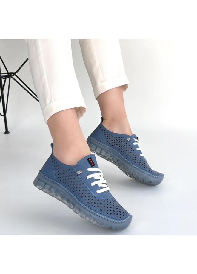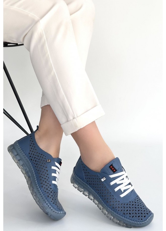 Otja Mavi Deri Lazerli Bağcıklı Spor Ayakkabı