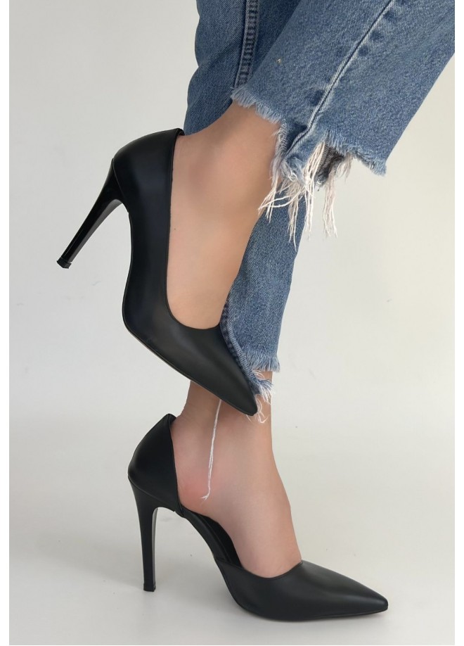 Pley Siyah Cilt Stiletto Ayakkabı