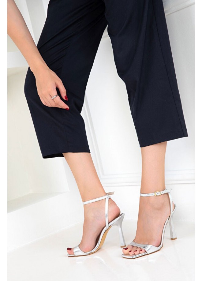 Jowin Gümüş Rugan Topuklu Bilekten Kemerli Ayakkabı