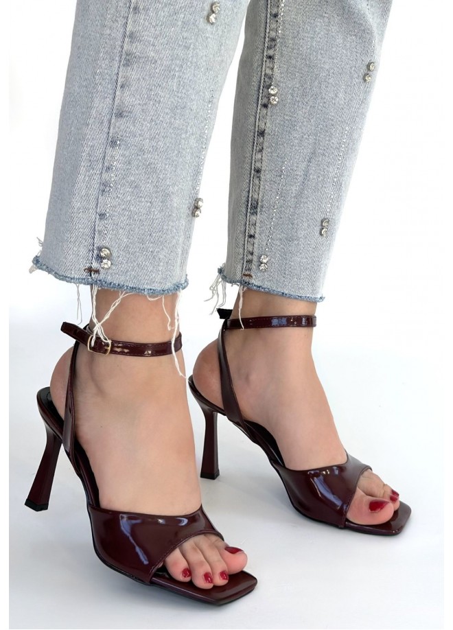 Soha Bordo Rugan Topuklu Bilekten Kemerli Ayakkabı