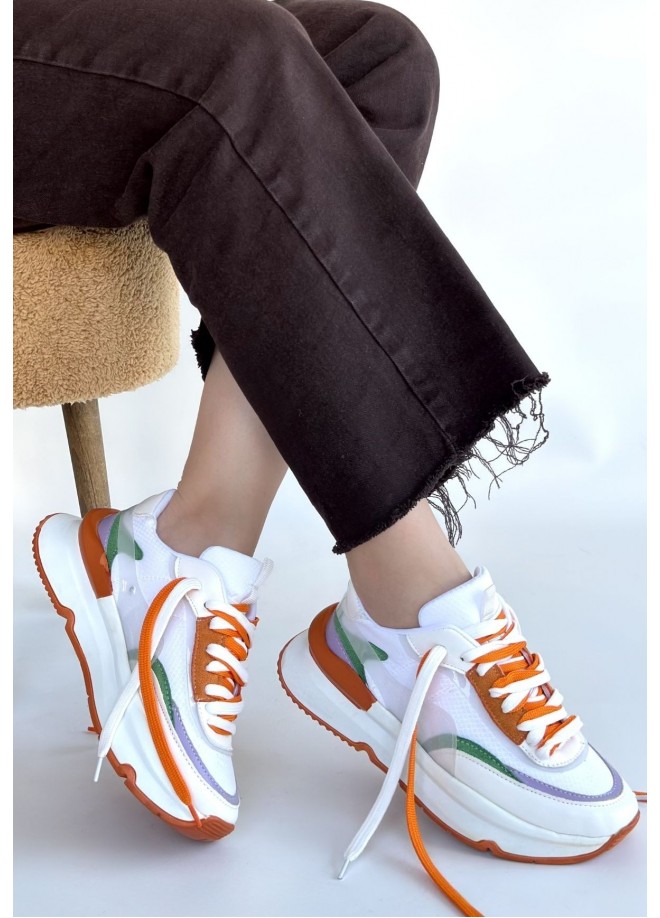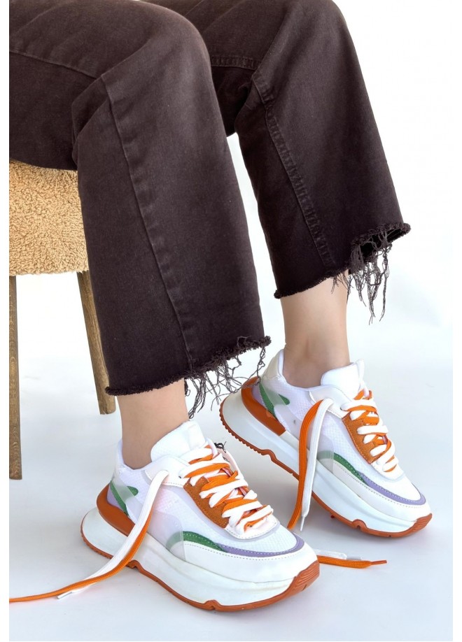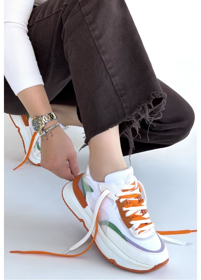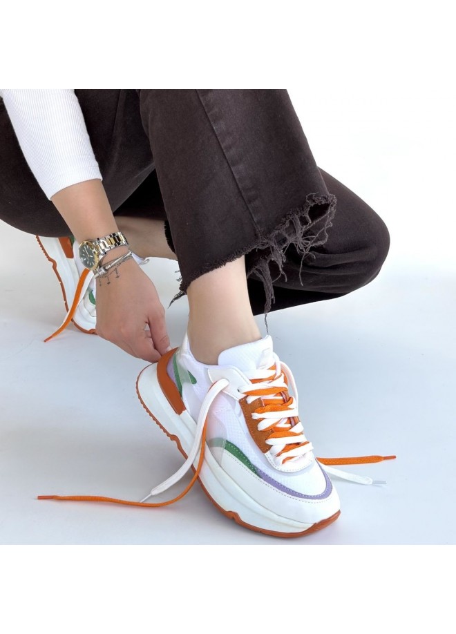 Aleh Beyaz Cilt Turuncu Detaylı Çift Bağcıklı Spor Ayakkabı