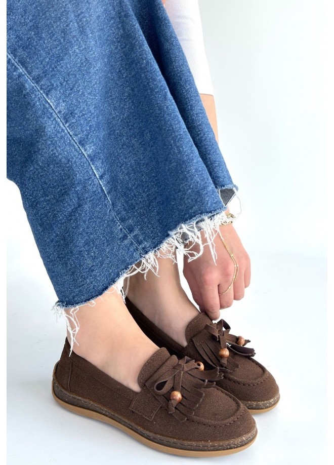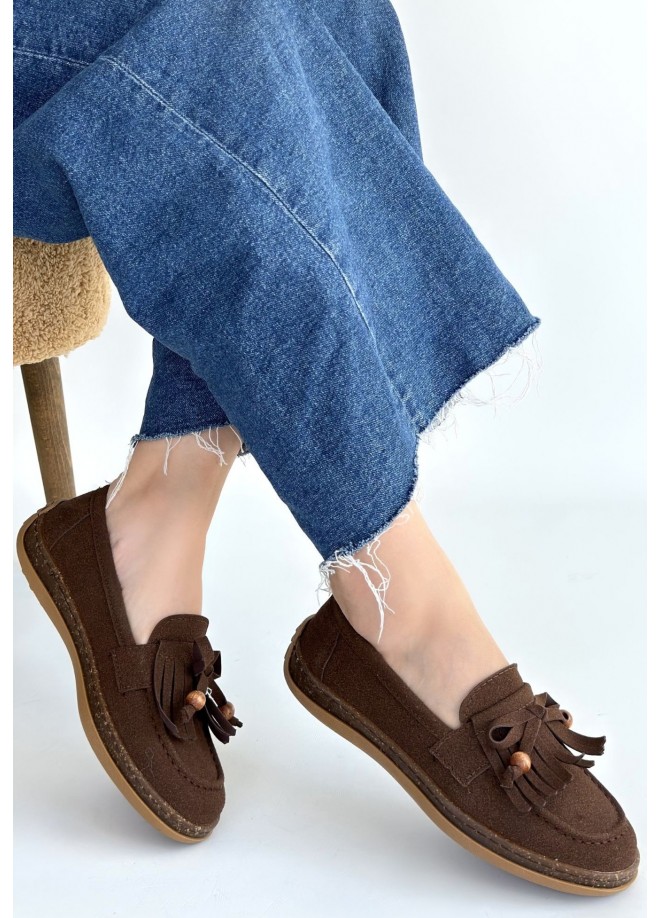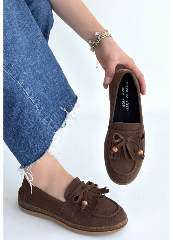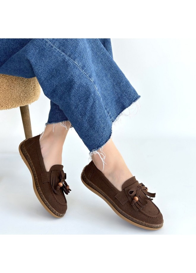 Boriy Kahverengi Deri Tozu Süet Babet Ayakkabı
