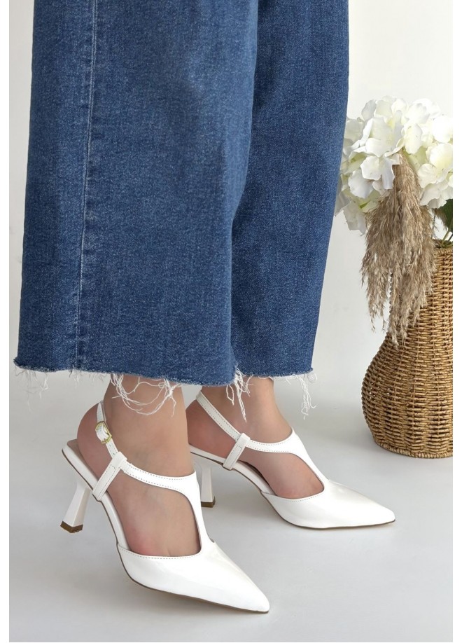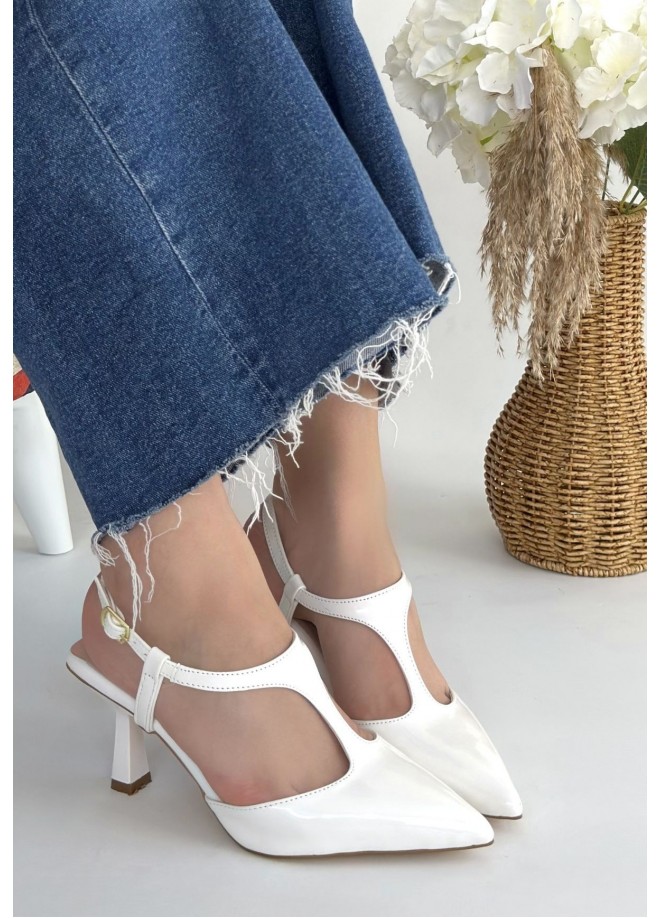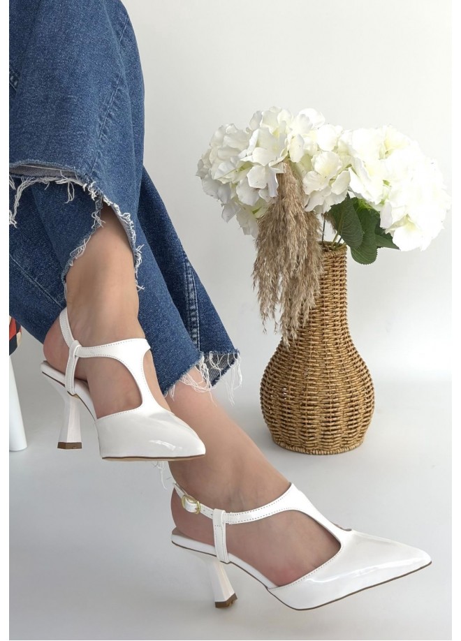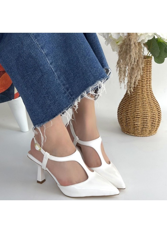 Tula Beyaz Rugan Topuklu Ayakkabı