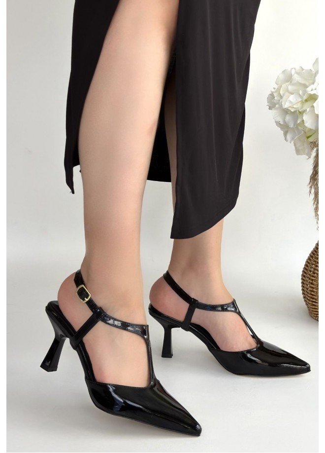 Tula Siyah Rugan Topuklu Ayakkabı