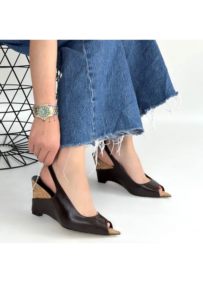 Nemba Kahverengi Rugan Dolgu Topuk Ayakkabı