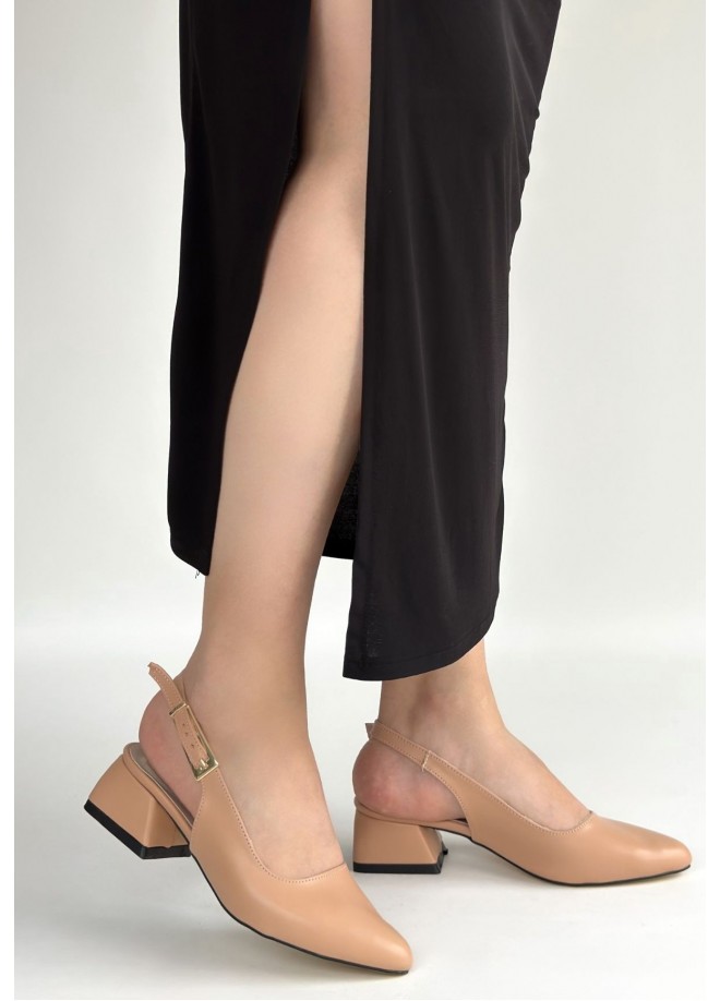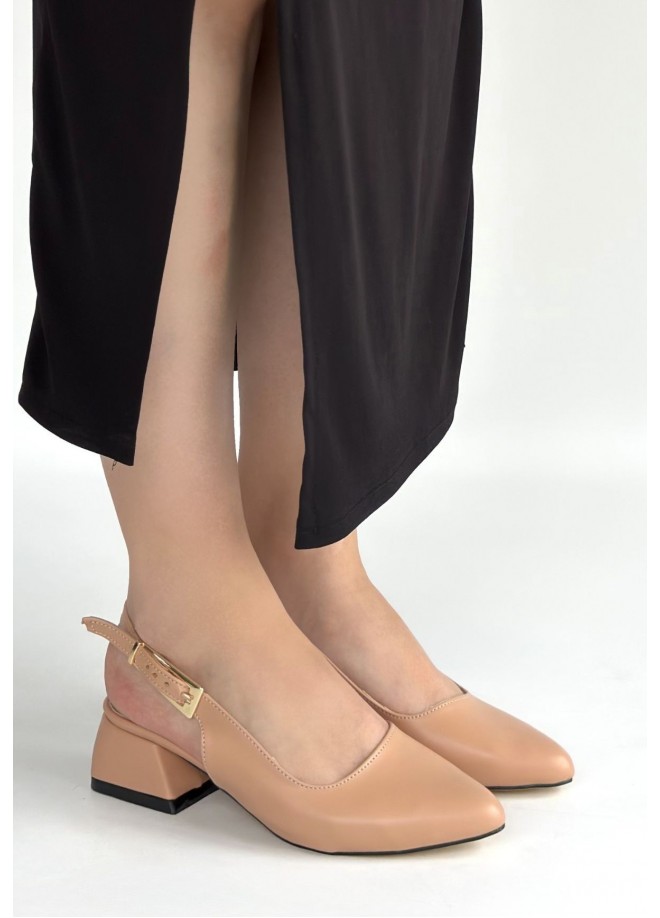 Jonji Nude Cilt Topuklu Kemerli Ayakkabı