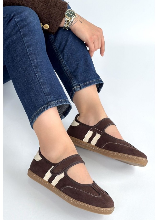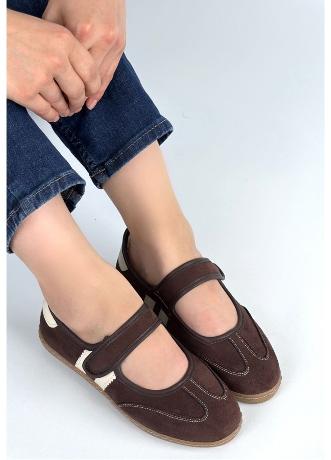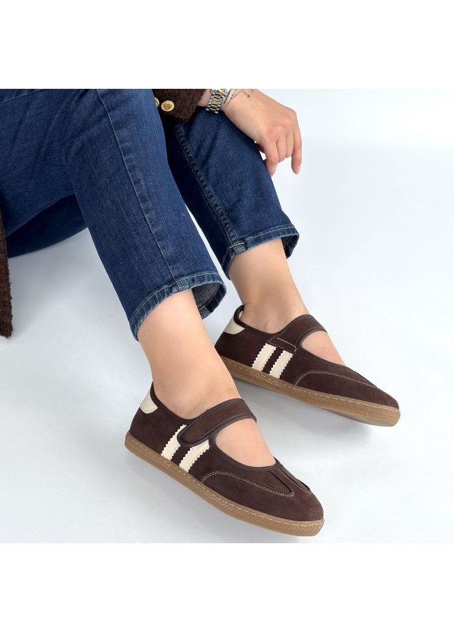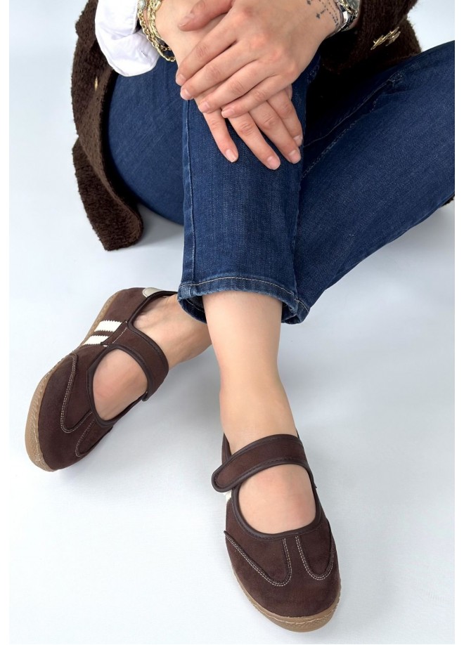 Menja Kahverengi Süet Cırt Cırtlı Babet Ayakkabı