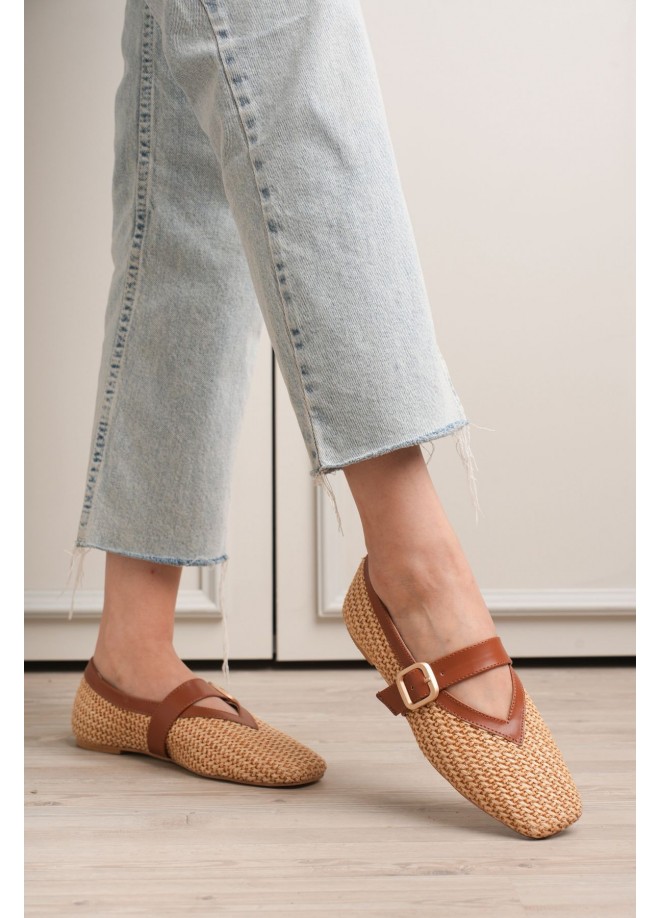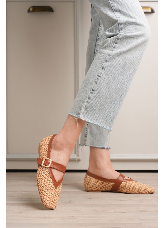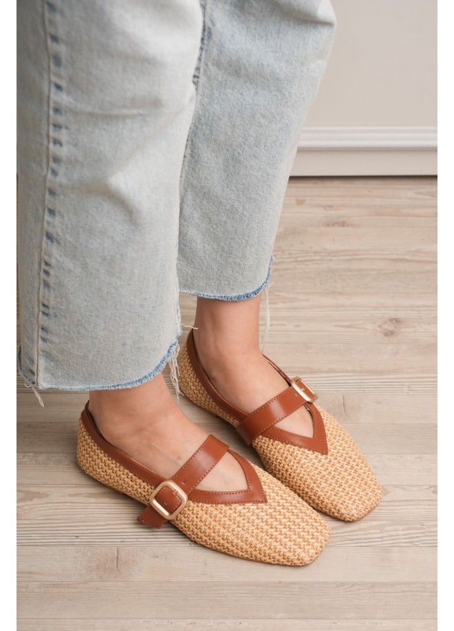 Ponti Taba Cilt Hasır Detaylı Babet Ayakkabı