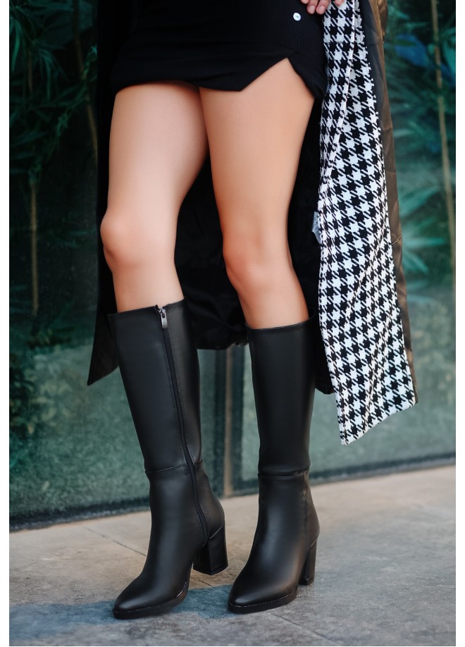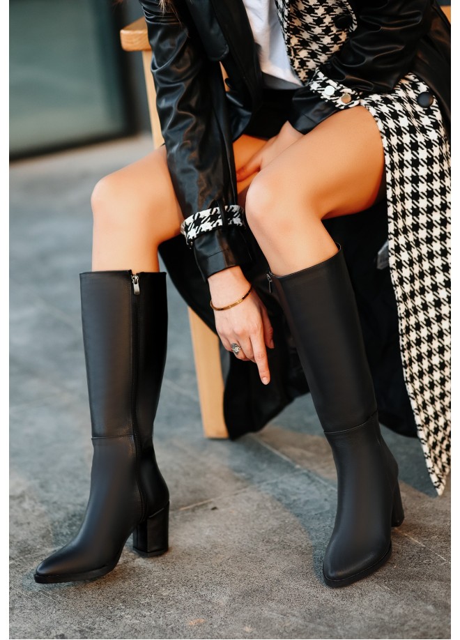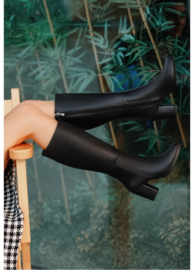 Detay: Düz Yandan Fermuarlı Diz Altı Çizme.